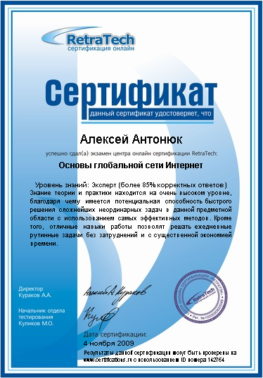 Сертификаты Brainbench